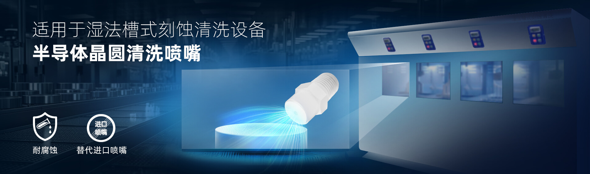 產品:實心錐噴嘴 應用: 噴嘴安裝于槽式濕法刻蝕設備里,通過配合不同化學藥液,有效去除晶圓表面顆粒、有機物和金屬離子,應用于晶圓制造、MEMS制造,以及功率器件制造領域。 工業(yè)噴嘴專業(yè)制造商🔥 品質可靠·規(guī)格齊...